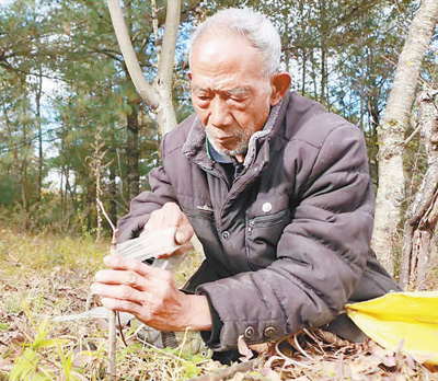 杨廷相为村民免费嫁接果苗。王明华摄 核心阅读 在高寒缺水的云南保山市西邑乡真峰村,流传着一位七旬硬汉杨廷相的自强故事。他双腿高位截肢,遭遇家庭变故,始终凭着一股干劲儿,与困境顽强抗争。编竹、养蜂、嫁接……他样样都是一把好手。不但把自己活得顶天立地,还上养老母,下育儿孙,如今更帮助村里人共同增收。 如果有一位76岁老汉,一辈子生活在高寒缺水的山里,上有97岁的老母要供养,家里的年轻人在外打工,他还要照看2岁的重外孙。比这还沉重的是,老汉双腿高位截肢近40年,行动全靠双拐。对这样的老人,你会想到什么?——丧失生活能力或是一贫如洗……如果多少了解脱贫政策,你也许会觉得,应将他纳入社会保障兜底的范围。 再见时—— “老杨是我们村的致富带头人” 在云南省保山市西邑乡真峰村,记者又一次见到杨廷相。 距离上次见面已过去20多年,当年杨廷相作为“全国自强模范”“全国劳动模范”曾受到社会广泛关注。而如今,杨廷相须发全白,黝黑的脸庞深陷着道道皱纹,粗壮的双手拄着双拐,挪动着身体迎接远客,略微浑浊的眼神透出欢喜来。 “老杨,听说你这些年少在外头了。在家编竹篓,收入怎么样啊?”一落座,记者忙问。 “这一年嘛,能卖个4000块钱。” “还有其他吗?” “那就多咯,核桃一年能卖9000多块,梅子也有4000块左右,仔畜卖了5000块吧。还有养蜜蜂,采两季,差不多9000块。” “老杨是我们村的致富带头人!”村支书杨学荣一句插话让大伙儿都笑起来。 阳光洒进院子里来,杨廷相额头上几条青筋光亮醒目,记者不由得想起他的几件往事来。 忆往事—— “够汉子,不把孩子和家庭扔给社会和他人” 杨廷相所在的真峰村“山不成山,坝不成坝”,出门是“头顶乌云脚踩霜”,高寒缺水,种一年粮食,只够吃半年。杨廷相家有五兄妹,父母上了年纪,身为长子,早早就担负着拉扯弟妹的责任。他聪明好学,上过4年初小,上世纪60年代当上了赤脚医生,还入了党。 就在24岁的杨廷相要扬起生命风帆之时,病魔却找上门来。右腿罹患脉管炎,经多方医治无效,无奈之下进行了截肢手术;祸不单行,仅仅过了1年,妻子又因难产,丢下一个两岁多的女儿走了,上天似乎要与杨廷相过不去。10年之后,杨廷相脉管炎再次发作,这次,左腿也截了肢,就这样,杨廷相从五尺汉子变成了双腿高位截肢的残疾人。 命运轮番的重击让杨廷相几乎喘不上气。据说,他曾在房梁上结下了绳扣,但想到日渐衰老的父母和蹒跚学步的女儿,还有依靠他读书的弟妹,杨廷相又把绳扣解了下来。“够汉子,不把孩子和家庭扔给社会和他人!”村民当年就是这样说杨廷相的。妻子走后的第二年,杨廷相向生产队队长杨科提出看护村里1000亩林地,老队长听后一愣,说,这活儿你怎么干得了,队上决定供养你,不要折腾了! 杨廷相不想放弃。队上见他坚持,就没有再反对。这样,杨廷相“爬爬跪跪”进了林地,在密林深处搭起了一个窝棚,从此过着“天不亮就起,天不黑不归”的生活。妹妹杨廷花每天给大哥送点包谷面和咸菜。家里人苦劝他几次回家未果后,也就放弃了。杨廷相守林“认树不认人”,但又注意方式方法,发现有人偷砍,他会在砍凿处钉上一颗钉子,偷砍者下次就不好再动手了。10年寒暑,杨廷相照看的林地始终是真峰村最好的。杨科禁不住感叹,真没想到,残疾人比正常人管得还好! 曾有一度,蔗糖价格走势很好,杨廷相做出一个惊人的决定,贷款到离家100公里以外的昌宁县勐统乡,承包40亩地种植甘蔗。这个决定遭到家里和村上所有人的反对,但搞活农村经济的政策却让杨廷相浑身都是劲。很快在勐统乡,甘蔗地里摸爬的杨廷相成了“名人”,但因为连续两年天旱,甘蔗的收入都不理想,杨廷相还欠下几万元的债务。当地村干部带着村民帮他收割甘蔗,没收一分工钱。 尽管后来杨廷相将所有欠款都一一还清,还挨家挨户送去烟酒,但直到今天,心里总觉得亏欠着人。 老天对人关了一扇门,会在别处开启一扇窗。杨廷相腿脚不灵,但脑子却一刻没闲着。“我哥的脑子是最好用的,他好学,也好琢磨事!”杨廷花说,除了赤脚医生的本行外,杨廷相会编竹器、会果树嫁接、会刻印章、会修日用品……这让他不但没有成为村里的累赘,反倒成为大伙离不开的“土专家”。 一个腿脚不便的人还能养嗡嗡飞舞的蜜蜂?同村的杨光明谈及此事,对杨廷相佩服得不行。“他养蜂的技术巧妙得很!”杨光明边说边比划,“每年3月至4月,蜜蜂要分巢,杨廷相用蜂蜜诱捉踩窝蜂,然后用一个竹筒将踩窝蜂吹进空蜂桶里。过上一两天,踩窝蜂就会回到原来蜂巢里,带着其他蜂群过来了。” 至于果树嫁接,杨廷相是请人传授加自己琢磨,手艺远近闻名。真峰村缺粮,却不缺果树,以果换粮是村民的主要生计。“有一次,我从收音机里听说湖南桃源县嫁接梅子树,卖苗子致富的事情,想想这个并不难嘛。”杨廷相接着说,“我把本村梅子树苗0.5元一株收购来,动手嫁接之后,以4元一株价格又卖出去。”除了梅子树,梨树、核桃树、花椒树、桃树都在杨廷相手上嫁接成功。 看未来—— “希望大伙致富,个个有收入,光顾自己也是不对的” 敞亮的庭院、两层的大瓦房,老母亲悠然地晒着太阳。看得出,这些年,杨廷相的日子过得平静而幸福。杨廷相常常对身边人说,“希望大伙致富,个个有收入,光顾自己也是不对的。”这话对记者又讲
