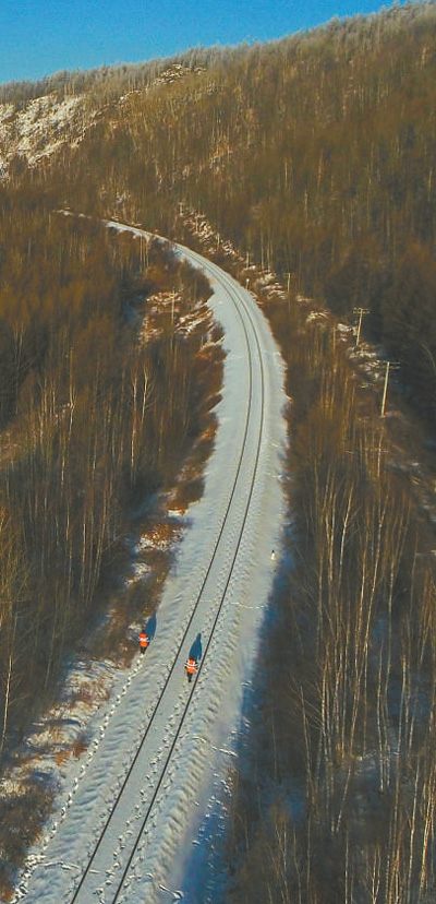 12月20日,维修队在巡查。 内蒙古大兴安岭深处的满归镇,每年封冻期210天以上,被誉为“中国冷极”。 清晨,零下40多摄氏度,哈尔滨铁路局海拉尔工务段金河线路车间满归维修工队班长李树成和伙计们背起十几件机具,赶往负责检修养护的30多公里铁道。铁路线建在山间丛林,加上天气极寒、路基冻害多,只能乘坐轻型轨道车,一个半小时才能到达检修地点。清理积雪、测量轨距、调节钢轨水平……每天连续在外工作6小时以上,50岁的李树成穿了两层棉裤,凉气还是顺着裤管往上涌。 “有经验的养路工肉眼观察就能知道这铁轨直不直。”对于这支平均年龄接近50岁的班组来说,处理冻害早就游刃有余。有些老伙计同钢轨相伴,已经30年。 大雪封山的冬季,旅客列车是当地出行的唯一方式。“道尺虽轻,在我们手上却重如山啊。”说话间,哈气模糊了李树成的脸。 张艺开 黄丽君 芦 男摄影报道 |