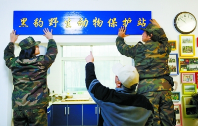 黑豹野生动物保护站成立即将满二十年,李理的父亲指挥儿子挂上正式的牌匾。