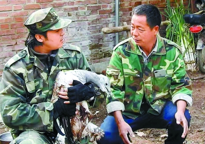 李理在大兴区救助一只受伤的大鸨。