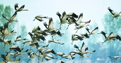 在官厅湿地栖息的灰鹤。李理摄