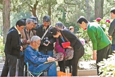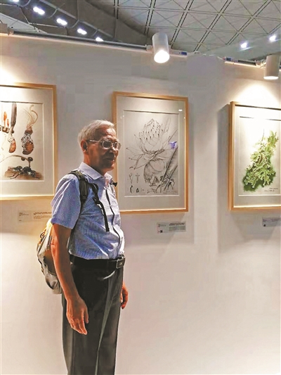 吴秦昌作品《“流星雨”月季》 11月27日,在世界花卉大观园里第十届菊花擂台赛现场,京城难得一见的“斗菊”场景吸引了很多专程来赏花的人,络绎不绝的“长枪短炮”对准“万菊竞艳,菊龙欲飞”的花场。 一派兴致盎然中,“手绘老人”吴秦昌坐在菊花前静心写生的画面吸引了很多人驻足围观。 实际上,本次菊花展的主场也是他个人的一次小型画展,经他手绘的14幅菊花画作与现场绽放多姿的菊花相映成趣,他生动、细腻、写真照般的画功频频受到点赞。 满头白发的吴秦昌老人退休前是一名航空高级工程师,退休后自学素描,又在古稀之龄学习植物绘画,把40多年看工程图纸的透视眼力,转换到画纸上,练就一笔不改的功夫。他用患白内障的双眼,从看到的朦胧世界,手绘出植物花卉660余幅,并且全部编号,做了植物科普笔记。他曾受到老画家曾孝濂老师激励,一路画进国内外植物类画展,连连摘奖。连素来不喜给人题字的陈丹青,也曾给这位“初学绘画的老头”写下鼓励的话。 陈丹青说,你不要进班,就这样画下去 最初怎么想到62岁开始学素描的?吴秦昌笑言,当初的学画是源于集邮的爱好。 他收藏极限邮品,讲究封片邮票邮戳内容协调一致,只要出门旅行就会收集当地的风光明信片。他记得特清楚,有一年去三清山,跑遍了景区也没有找到印有当地风光的明信片。“我自己画一张如何?”突然冒出的念头促使他在一张空白普资片上画出手绘风光图,画完竟然受到不少邮友的称赞。打那开始,一年半的时间他画了100张手绘明信片。后来他想要加强绘画的基本功,于是尝试练习写生,开始画铅笔画。 2007年12月15日,这个时间他记得很真切,因为著名画家陈丹青的一句话,他坚定地踏上自学之路。“那天在国家图书馆有一场陈丹青的讲座,在此之前,我只知道他名气很大,画了《西藏组画》。”学画半年的吴秦昌那时正陷入纠结:是报个班学好还是继续自己学好?带着这个问题他跑去听讲座。“到门口一看,好家伙,走廊里都站满了人”。 吴秦昌从人缝里挤进去,旁边靠墙都站得满满的,一直走到最前面,只有桌子前有一块空地。 “不管了,出去写生习惯了随地一坐”,他心头一热,一屁股就坐地上了,离桌子也就一米。陈丹青先说了“今天我不给任何人签名”的话才开始讲座,“我这一辈子只有两个毕业证,第一个是小学毕业证,第二个是中央美院的毕业证。”陈丹青的这两句话给吴秦昌留下很深的印象。 最后的互动环节中,吴秦昌举手提问,“我干了四十一年的飞机制造,退休有时间了想学画。”陈丹青问现在画过没有?他比划着,就这么一点点画。“他奇怪了,什么画有这么小的?我向他解释,我是在明信片五厘米见方的空地儿画一些风景图,想把旅游、集邮、绘画三个东西捏在一起,探索一条新路。他说你画多少张了?我说我画了百十张,像我这样的新手年纪又大,我是进一个班学好,还是不进班?”实际上抛出这个问题时,此番对话令他心里已经有了答案,“你就坚持按你自己的路走下去,不要进班,你就这么画下去好了。”陈丹青的回答让他心里特别踏实。“陈老师,您能不能破例给我的明信片签个名?”说完他紧张地递过去,“他没立刻签,放在桌子上,主持人继续下面的提问,可是在这个过程中他飞快地给我签了。”让吴秦昌没有想到的是,“他还写了‘丹青致敬’四个字”。讲座结束,他拿着明信片飞奔到魏公村邮局盖上3号邮戳,“在国家图书馆讲的,一定要‘国家图书馆’这几个字”。这张明信片,吴秦昌会时不时拿出来激励自己。 从学画到现在,花了2000块钱不到 很多人第一次见面都会问吴秦昌,怎样自学才能画好?他笑着和盘托出:“我学画的五年半没有临摹过别人一幅画,可是我的老师却很多。”怎么回事?“美术馆一有好的画展我就经常去看,一幅画看半天,这片叶子画得好,我就记住是怎么画的,回去就用到我的画里。” 很多人还让他推荐教材书,他直言一本也没有,“你先画起来再说,坚持一根铅笔一张纸,两年之后你再看自己的方向”。 从学画到现在,“我用最普通的笔、最普通的本,也就花了2000块钱不到”。 的确,他用签字笔作画时一笔不改的功夫,令人惊叹。“我这个人想学任何东西,会给自己挖坑,把后路断掉。前五年画铅笔画时,压根儿把橡皮扔了不用。”他觉得这样一来,进步无非是快和慢的问题,“不可能后退”。丢掉橡皮,“每一个线条下去都得考虑轻重,考虑方向,考虑长短”,这样训练了五年,再扔掉铅笔换到钢笔,“每一个线条都会一边考虑一边画”。 动笔之前,他喜欢扭来扭去地观察“模特”,把每一个细节都看清楚,“这时候脑子里已经想象出完工了以后的模样”。动笔时奔着想好的方向,把素材在脑子里重新编辑好再下笔,“有些叶子我不想选取,就给它摘掉。这朵花儿好看,就把它搬过来。” 即便是900度近视,加上白内障的病患,也阻挡不住他写生的热情。他的画本随身携带,碰到什么好看的写生对象,临时就能画。到北海、颐和园等皇家园林,“背着我这一套行头先绕湖走一圈,这个过程中记住有什么写生的好目标,然后再回过头去画。”在公园里写生,他身边常会围一大圈人。常年在户外写生,他自言是个怕热不怕冷的“老头儿”,最考验他的是酷暑闷热。然而即便是严冬,他也不惧外出,他还把锻炼身体和写生结合起来,颇自豪地说:“我五年前上西藏冰川