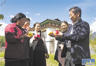 谢红江(右一)在对比苹果种植标准化示范园里的苹果和村民自种的苹果 李鑫摄 周一有约 “这树枝首先要给它松松‘筋骨’,上下左右都要压一压,才能拉枝,否则会伤了枝条,它跟人一样,做运动前要热身。”见到谢红江时,这位四川省农业科学院园艺研究所研究员正耐心地给西藏林芝市米林县羌纳乡林巴村村民讲授苹果树拉枝开角技术,6名藏族妇女听得入神,不时还用手比划两下。 到如今,拥有博士学历的谢红江研究高原苹果栽培已有12个年头。西藏自治区与四川省签订农牧科技战略合作协议后的近3年里,谢红江带领的博士团队往返四川、西藏40多趟。如今在林巴村,一个现代苹果标准化示范园已“开花结果”。 把专业术语变成鲜活的比喻 中等个头,朴素打扮,眸子里透出的神采穿过金丝眼镜更显深邃,46岁的谢红江温文尔雅,但当他和果农站在田间地头时,又是一副幽默风趣姿态,深奥难懂的专业术语在他嘴里变成了一个个鲜活的比喻,老百姓很快便领会其中奥秘。 “种苹果也要讲‘优生优育’,一棵树吸收的营养有限,一些没用的枝条要剪掉,多余的花、果也要摘除,减少营养消耗,把营养集中起来给长的好的花芽和枝干。就好比,把一个饼分给两个孩子吃,总没有一人吃一个饼吸收的营养多……”谢红江形象生动地向果农解释疏枝及疏花、疏果原理。 谢红江说,林芝是块宝地,这里纬度较低、海拔较高,昼夜温差大、光热资源丰富,天蓝水清、土壤无污染,具有种植有机苹果得天独厚的生态条件。 林芝市米林县县长才旺尼玛说,县里有2.3万亩的苹果种植面积,但80%以上由于栽培管理粗放、技术普及率低、树体老化等原因,始终没有被“唤醒”。 针对苹果种植低效、低产、低质的问题,谢红江团队专门开出一剂“药方”——矮砧集约栽培,可以控制树冠大小,减少树体消耗,结果早,产量大,品质好。 左手拿着新品种“瑞阳”苹果,右手拿着20多年老树结下的苹果,一个红彤彤又大又脆甜,另一个青白色既小还酸,林巴村村民次旺拉姆不由感叹:“以前的苹果树一年也就结10来个果子,现在一棵树能结50多个,还好吃,差距太大了。” 拉枝整形、疏花疏果、施肥浇水、病虫预防……在谢红江团队手把手培训下,次旺拉姆和女儿很快就掌握了种植技术,看着亲手栽种的17棵苹果树结出硕果,母女俩心里的滋味别提多甜了。 实现产业化带领乡亲富起来 “一年长树、二年试花、三年稳产、四年丰产”,高原苹果种植创造的纪录,比传统模式省肥50%、省劳力65%、节省土地55%,增产4倍左右。村里流传的一句话就是佐证:房前屋后几棵树,百姓不愁盐和醋;房前屋后百棵树,一定成为万元户。 技术革新带来了种植模式的蝶变,让百姓收获不少实惠。土地流转获租金、果园务工挣工资、年底分红得收益,比起 “单打独斗”赚来的辛苦钱,苹果产业化的发展,不仅使农民挣钱变得轻松许多,也为当地巩固脱贫成果、振兴乡村探索出了新路径。 “我把家里的26亩土地流转了出去,今年有26000多元收入,而且土地流转费一亩每年还增长50元。另外,我和女儿还在果园里打工,一人一天130元。丈夫可以不用操心家里,外出打工收入也不少。”次旺拉姆说。 米林县在2018年9月实现了整体脱贫,而对于羌纳乡林巴村、色沃村和娘龙村等5个村的69位建档立卡贫困户来说,在苹果示范园里打工挣钱、流转土地、年底分红,成了他们脱贫后稳定的增收渠道。2019年,脱贫后的69位村民通过在果园务工,工资收入达80余万元,等到2020年果园迎来稳产期,他们每人年底还能额外分红1000元;到2022年以后,苹果园进入丰产期,每人年底分红将达到2000元。 站在田埂旁,阵阵果香扑鼻,望着满园盛果,谢红江怡然自得。眼前的这片苹果园,不仅是川藏两农科院的专家耗费3年心血,在雪域高原上结下的科研硕果,也是当地百姓今后走向富裕、防止返贫的产业依靠。 谢红江走到一棵结满苹果的树下,摘下两个,在袖子上擦了擦,与乡亲们一起品尝,并说道:“你尝这苹果多甜啊,将来把品牌打出去,绝对不愁卖,村民一年增收一两万元不成问题,这就是一片希望的田野啊!” (据新华社) |