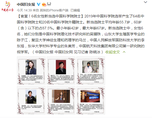2019年中国科学院和中国工程院两院院士增选共有139人,其中女性12人,中国科学院和中国工程院各占6名。 集美貌智慧于一身,她们才是真偶像。 5.最集中的地域 北京新增59名两院院士,数量居全国首位。 北京地区共有27人当选中国科学院院士,占比42.2%;32人当选中国工程院院士,占比42.7%。 但是,中国“出产”两院院士最多的城市竟然不是北京和上海!据相关数据统计,苏州籍院士数量长期以来位列全国第一。 6.最“严苛”增选 长期以来,我国院士制度在推动科技界出思想、出谋略、出成果、出人才方面发挥了重大作用。科技界也涌现出许多受到人民爱戴的科学家,他们代表的是一种时代精神,影响的是一代又一代年轻人。 为进一步促进我国科技人才的发展,排除非学术化因素的干扰,让院士称号真正回归学术和荣誉,党的十八届三中全会提出改革院士制度的要求。 2014年,两院举行了同为两年一度的院士大会,分别通过了《中国科学院院士章程》和《中国工程院章程》。自2014年院士制度改革后,院士增选推荐渠道由原来的100多个收紧为“院士和有关学术团体”两个。 “盖有非常之功,必待非常之人。” 新晋院士“热榜” 1.王坚——院士中少见的民营企业带头人