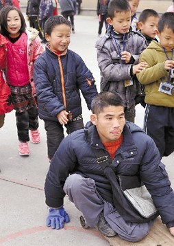 李小辉是安徽省宿州市人,因患小儿麻痹症下肢残疾,曾以乞讨为生。去年12月5日,李小辉在定海乞讨时,向南珍大厦顶楼轻生者喊话。 定海蓝天学校校长徐广辉介绍,蓝天学校是一所农民工子弟学校。今年春节过后,李小辉特地找到他,说自己是个文盲,想读书学文化找工作,不想再伸手乞讨。学校老师也曾在报纸上看到李小辉喊话救人的报道,最后终于破格录取了这位超龄新生。 一年级学生正在“护送”李小辉同学回家。因李小辉没有经济来源,蓝天学校免除了他每学期430元的学费,还为他提供了一间校内的单人宿舍。 坐进教室、拿起笔的李小辉一身干净的棉衣、新剪的小平头,显得格外精神。老师计划在一年时间里让他学完小学1至4年级的语文和数学。李小辉对学习充满了渴望:“我不想再伸手乞讨,等有了文化,我要凭自己的双手挣钱”。 蓝天学校的小朋友很快和这位新同学打成一片,吃中饭时对他也特别照顾。蓝天学校在2004年成立,李小辉是该校迄今为止接收的年龄最大、残疾最严重的学生。校长徐广辉说:“我们办学的目的就是传播知识,不管老板还是乞丐,只要他渴望学习知识,我们就会提供学习的条件。 |