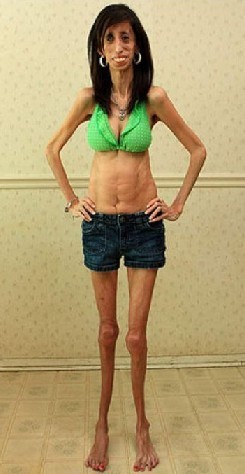 美国21岁的Lizzie Velasquez ,体重只有25公斤。为了坚持健康,她每天要吃60小份肉食。大约每15分钟就得进食一次,即便如此,她现在的身体仍然是零脂肪,体重从未超过27.3公斤。