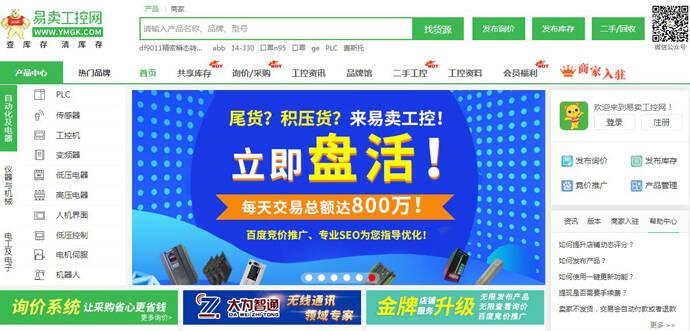 易卖工控网(www.ymgk.com)是一家专注中国工业自动化领域的B2B平台,易卖工控网提供丰富工业自动化设备和工业品营销采购,与众多工业品品牌厂商合作,易卖工控致力于为消费者采购到工业齐全设备、价格实惠工控产品,做到正品有保障、交易无忧的工业品营销采购商城。