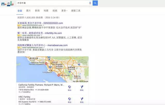 总体看来,各个搜索引擎手机版得到的结果和电脑版差距不大。百度还是那个百度,搜狗还是那个搜狗,必应还是那个必应。 不过,360搜索差别比较大,之前在电脑版出现在第二屏的医院升至排名第一,其他内容被挤到下面去了。有道和360的内容也不像此前一样的一致,有道手机版的内容更清爽一些。 另外,值得注意的是,手机版上的推广标示整体更不明显了,搜狗上少了黄色白底标签,必应更是没有了灰色区块。和电脑版相比,手机版搜索引擎上推广的迷惑性更大。 到底哪个能将就用用? 目前,国内可以正常使用的几大搜索引擎或多或少仍都存在着医疗广告信息。在数量上看,360搜索/有道搜索几乎没有此类信息,百度、搜狗、必应半斤八两。在迷惑性上,百度小小的灰色“推广”二字十分容易被忽略,搜狗以黄底白字标示,必应以灰色区块标示,比较明显。但在手机版上,所有的搜索引擎迷惑性都很大。如果你要搜索医疗相关信息的话,或许360搜索目前能给你最想要的。 对了,好奇的我也谷歌了一下“不孕不育”这个词,结果让人大吃一惊。在搜索其他疾病词汇的时候,谷歌都是干干净净一片。要知道,谷歌曾因违规发布医疗广告被罚款5亿美元后就学乖了,因此在医疗上相当谨慎。难道,“不孕不育”会出现推广是因为通常没有明显病征具有特殊性的原因?