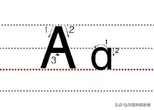 26个字母书写的规格 1.Aa书写时注意大写的A两只脚角度不要太大,影响美观,小写的a的圈圈写圆一点。
