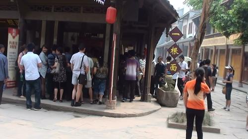 一根面的制作 由于黄龙溪一根面制作工艺相当复杂,随着机械制面逐步取代手工,以前家家户户都会做的一根面现在几乎失传!现在也只有位于仿清街尾的少数几家人能完整的制作”黄龙溪一根面“!据说一根面制作从和面到面下锅总共需要十几道工序,历时十多个小时!首先将适量的面粉加入少量的食用盐,再用65度的温热水和面一小时左右,和好面以后在揉上半小时,再醒半小时,如此反复7、8次,面团就基本制作好了,面团做好之后开始搓条,从胳膊粗的粗条一直不停的搓,一直搓到手指头粗细,然后再一圈一圈盘在圆盘里,盖上湿布,醒上4个小时左右,就可以下锅了,下锅时由面艺师捏住一根面的一头远距离的抛入锅中煮熟就像猛龙过江般,一时间龙飞凤舞的,甚是好看! 排队等面吃,真是吊胃口 一根面的特色 一根面的特色在于“一碗只有一根面,一锅也是一根面。一根面要多长有多长” 面条滑爽、柔韧弹牙、越嚼越有越有嚼头!一根面的精髓在于吃的是面条本身的味道而不是调料的味道!即使不加绍子(面卤),味道也是鲜美无比!一根面的吃法也很讲究:必须夹住一根长面从头吃到尾,如果大夹大夹的往嘴里塞,是绝对品不出味道的!这种独特的面食只有黄龙溪古镇才能吃到,所以民间一直流传着”不吃一根面,枉到黄龙溪“的说法!一根面下锅过程真是扯眼球 电视宣传黄龙溪 1990年,该公司在向全国赠阅的一期出版物中,以《古镇黄龙溪一瞥》为题,详细介绍了古镇的历史,诸葛亮兵屯牧马山,以及古镇中医后继有人等情况。并用大量的古庙、古树、古街巷、古浮桥及古老木器、篾器照片,展示了黄龙溪“古镇风光好,古镇民风淳”的景象。同年,《中国民航》、《西南航空》等杂志开始不惜版面介绍黄龙溪古镇风情。在’92中国友好观光年”中,省旅游局和西南民航管理局联合将黄龙溪古镇推为8条精选旅游线路之一。 近年来,各新闻媒体对黄龙溪进行了大量的报道,使黄龙溪逐渐被大众知晓。 近几年,中央电视台对黄龙溪这座古镇可谓是情有独钟。1998年,中央电视台“东方时空”栏目首次在黄龙溪拍摄了《黄龙溪烧火龙》。今年7月,中央电视台“东方时空”新开的《记事》栏目,又将《黄龙溪今日》作为首播节目,预计在年底播出。据可靠消息,目前央视二套、七套节目正与黄龙溪联系,也欲来古镇沐浴古香、古风。 编辑本段周边线路黄龙溪 本数据来源于百度地图,最终结果以百度地图数据为准。 黄龙溪距成都只有30公里,人民南路南延线通车后,从成都到黄龙溪只需20分钟路程;而随着府河的通航,从水路到黄龙溪,沿途可欣赏到川西坝子的田园风光,将更有一番风味。不仅如此,一条黄金旅游线也将呼之欲出:黄龙溪(双流)———仙女山(彭山)———乐山将连成一线。 黄龙溪是诱人的古镇。但这座古镇还需要不断地完美。从1992年开始,当地政府投入了上亿元,对黄龙溪的基础设施加大了建设力度,但这还远远不够。 据双流分管旅游的副县长曾敏介绍,黄龙溪镇是一个集山、水、城一体的水乡城市,她本身体现了古人依托自然、亲近自然、天人合一的人居环境构想。因此,一定要把历史留给我们的这笔财富保护好、利用好,在此基础上进行保护性开发,造福我们的子孙后代。一方面要在“古”字上下功夫,保持古镇的天然魅力;一方面要在“水”字上下功夫,只有水才能给万物以灵气。今后10年内,当地政府将加大古镇旅游开发的招商引资力度,拟在古镇外围恢复古河道,建成人工湖与府河相通,将古镇建成一个岛,使古镇具有“东方威尼斯”的美誉,成为一座让世人瞩目的生态旅游胜地。黄龙溪 江洲田园风情浓,远处山丘树荫绿。黄龙溪这座川西保存得最为完好的古镇处在成都府河旅游线的精华地———“历史篇”和“自然篇”的交汇处。九五期间共接待海内外游客达1.095亿人次,旅游总产值达5.28亿元。我们相信,通过当地政府的努力,随着双(双流)黄(黄龙溪)路、藉(藉田)黄(黄龙溪)路和府河整治通航,该镇人工湖、烧火龙广场的建成,届时,黄龙溪这座古镇定会成为一朵盛开的、光彩夺目的玫瑰。 编辑本段电影拍摄黄龙溪 独具特色的影视外景地1983年盛夏,当黄龙溪还未完全向世人撩开其神秘面纱时,一群俊男靓女突然开赴黄龙溪,把古镇唯一一家客栈塞得满满的。第二天,一群古妆男女闪现在古街古巷,摄影师忙前赶后累得满头大汗。“黄龙溪在拍电影……”消息像长了翅膀一样向四面传播,远至彭山、仁寿、新津的乡亲们从四面八方赶来黄龙溪,许多人在这个古镇上“安营扎寨”,数十天里伴着摄制组的水银灯闪烁。这就是当年峨嵋电影制片厂首次选中黄龙溪古镇为外景地,拍摄历史故事片《卓文君与司马相如》的情景。 时间很快就过去了18年。今天的黄龙溪人,对于拍电影、电视早已见惯不惊,有许多人还提供古宅、充当群众演员发了一笔“影视财”;也有许多影视演员因黄龙溪而走红当今影视界:如刘晓庆、《卓文君与司马相如》一片中扮演卓文君的邬倩倩。18年来,以黄龙溪古镇为拍摄基地 ,诞生了200多部电影、电视剧。去年,由中国电影合作制片公司、美国熊猫制片公司、美国探险制片公司联合拍摄的IMAX影片《女人与熊猫》,还将黄龙溪古镇推向了美国的旅游市场。 景区与府河漂流游览连在一起。从成都市郊望江楼起程,沿府河经黄龙溪顺流而下,可达彭山县的